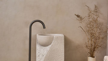טרה כיור ארטיפיקל סטון ריצפתי משולב טרוונטין אפור ועץ